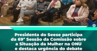 Read More »PRESIDENTA DO SEESE PARTICIPA DA 69ª SESSÃO DA COMISSÃO SOBRE A SITUAÇÃO DA MULHER NA ONU E DESTACA URGÊNCIA DO DEBATE SOBRE SISTEMA DE CUIDADOS