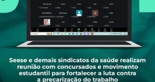 A diretoria do Seese, em conjunto com dirigentes do Sinfito, Sinodonto, Sinpsi, Sindifarma, Sindinutrisse, Sintama e Sindasse, realizou, no dia 17 de outubro, uma reunião online com aprovados no concurso público da Secretaria de Estado da Saúde (SES), além de representantes do movimento estudantil. O encontro contou também com a participação de professoras da Universidade Federal de Sergipe (UFS) e …