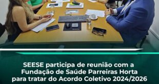 A diretoria do SEESE participou, no dia 29 de outubro, de uma reunião com a Diretoria-Geral da Fundação de Saúde Parreiras Horta (FSPH), com o objetivo de dar continuidade às tratativas referentes ao Acordo Coletivo de Trabalho (ACT) 2024–2026. O encontro faz parte do procedimento administrativo instaurado no âmbito do Ministério Público do Trabalho (MPT), que visa fortalecer o diálogo …