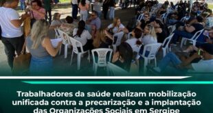 Na manhã desta quinta-feira (17), trabalhadores de oito categorias da saúde, incluindo servidores de Aracaju e de diversos municípios sergipanos, participaram de uma grande mobilização em frente ao Palácio do Governador, para manifestar contra a precarização do trabalho no serviço público municipal e estadual. Caravanas de Propriá, Nossa Senhora da Glória, Neópolis, Itabaiana, Simão Dias e Estância vieram participar do …