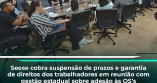A diretoria do SEESE participou, nesta quinta-feira (16), de uma reunião com representantes da gestão estadual — entre eles, a Procuradoria-Geral do Estado (PGE), a Direção da Fundação Hospitalar de Saúde (FHS) e a Secretaria de Estado da Saúde (SES) — para tratar da situação envolvendo as Organizações Sociais (OS’s) e o termo de adesão apresentado aos servidores e empregados …