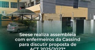 A diretoria do Sindicato dos Enfermeiros do Estado de Sergipe (Seese) realizou, no dia 16 de dezembro, uma assembleia com os enfermeiros da Cassind para discutir a proposta de Acordo Coletivo de Trabalho (ACT) referente ao período de 2025 a 2027. Durante o encontro, a diretoria do sindicato esclareceu que o ACT atualmente vigente teve sua vigência encerrada em maio …