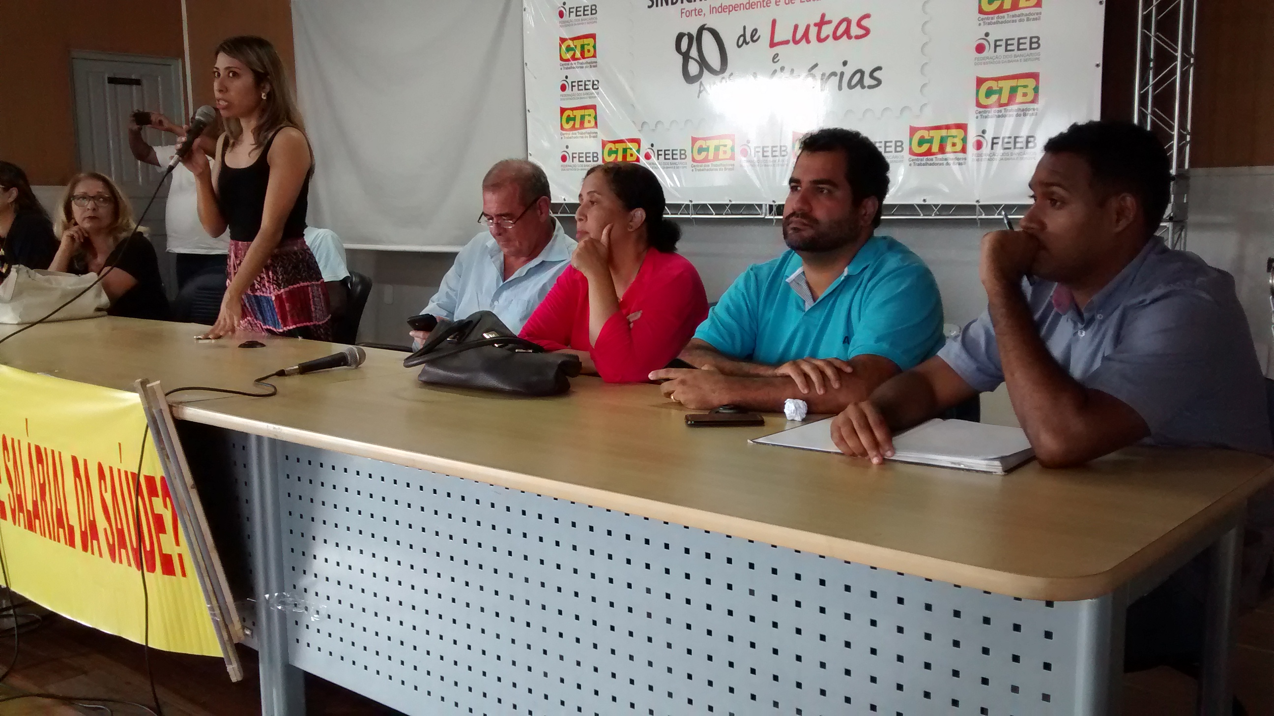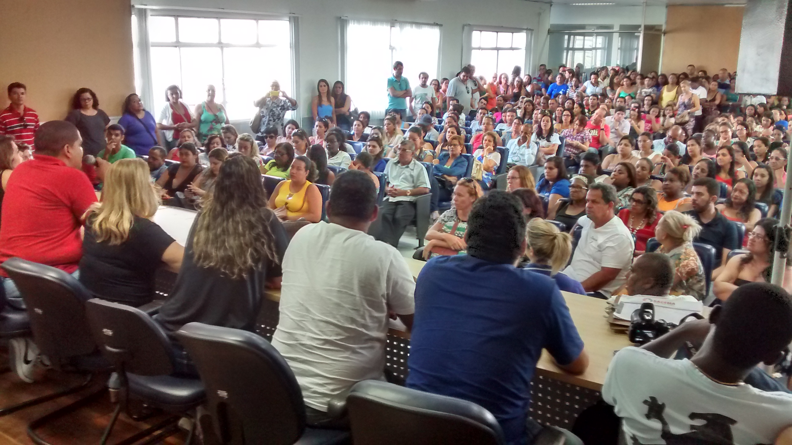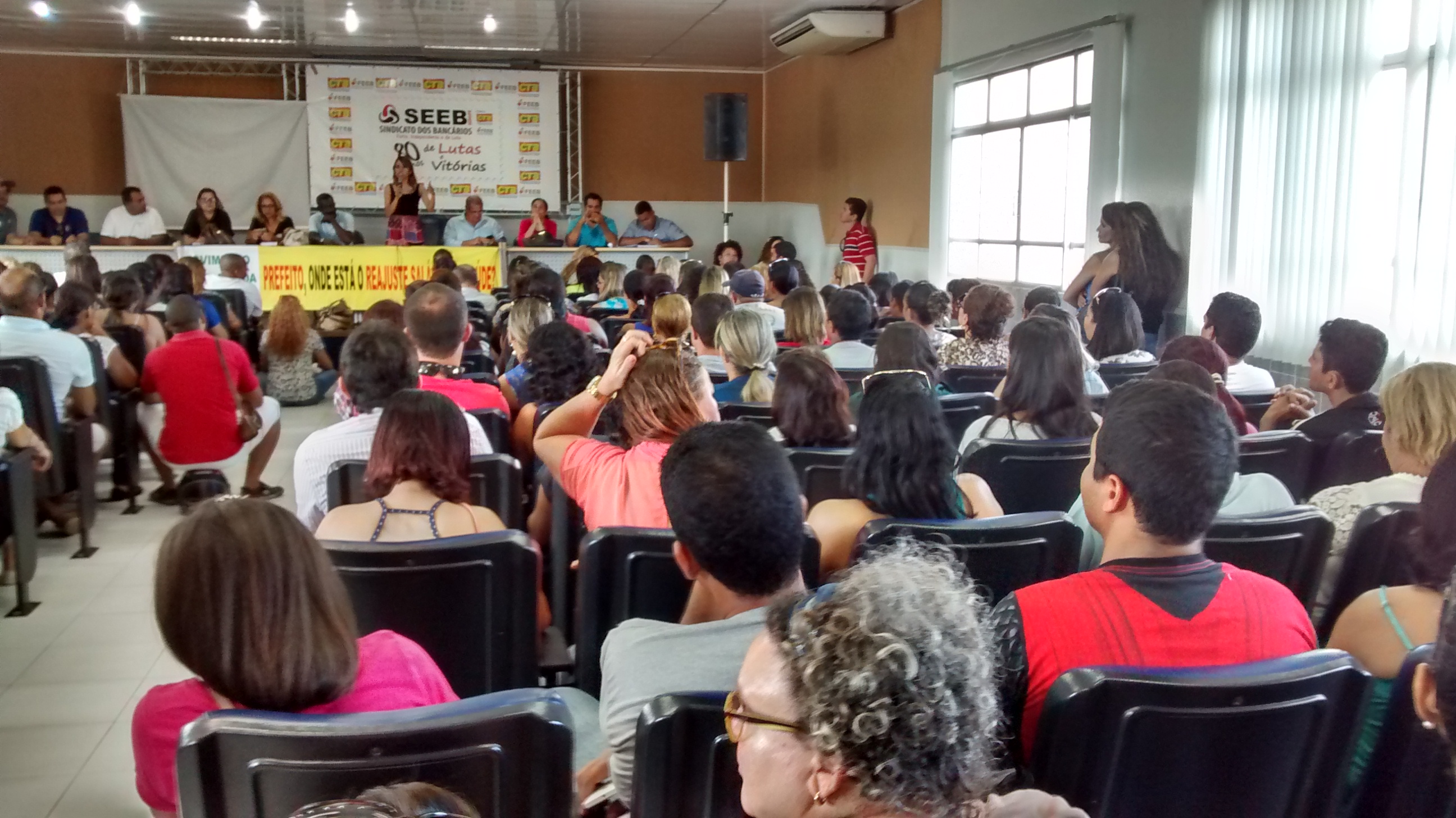 Há 21 dias em greve, servidores da saúde de Aracaju participaram na tarde de hoje de mais uma Assembleia presidida pelos diretores e presidentes dos 10 Sindicatos que lideram este movimento grevista. O evento aconteceu no auditório do Sindicato dos Bancários que ficou lotado. Mais de 400 pessoas participaram desta Assembleia que teve como objetivo organizar outras mobilizações, já que o Prefeito João Alves Filho informou por meio de uma nota exibida pelos telejornais de Sergipe na última quinta-feira, dia 16, que tem encontrado dificuldade para conceder o reajuste salarial aos servidores da saúde.
