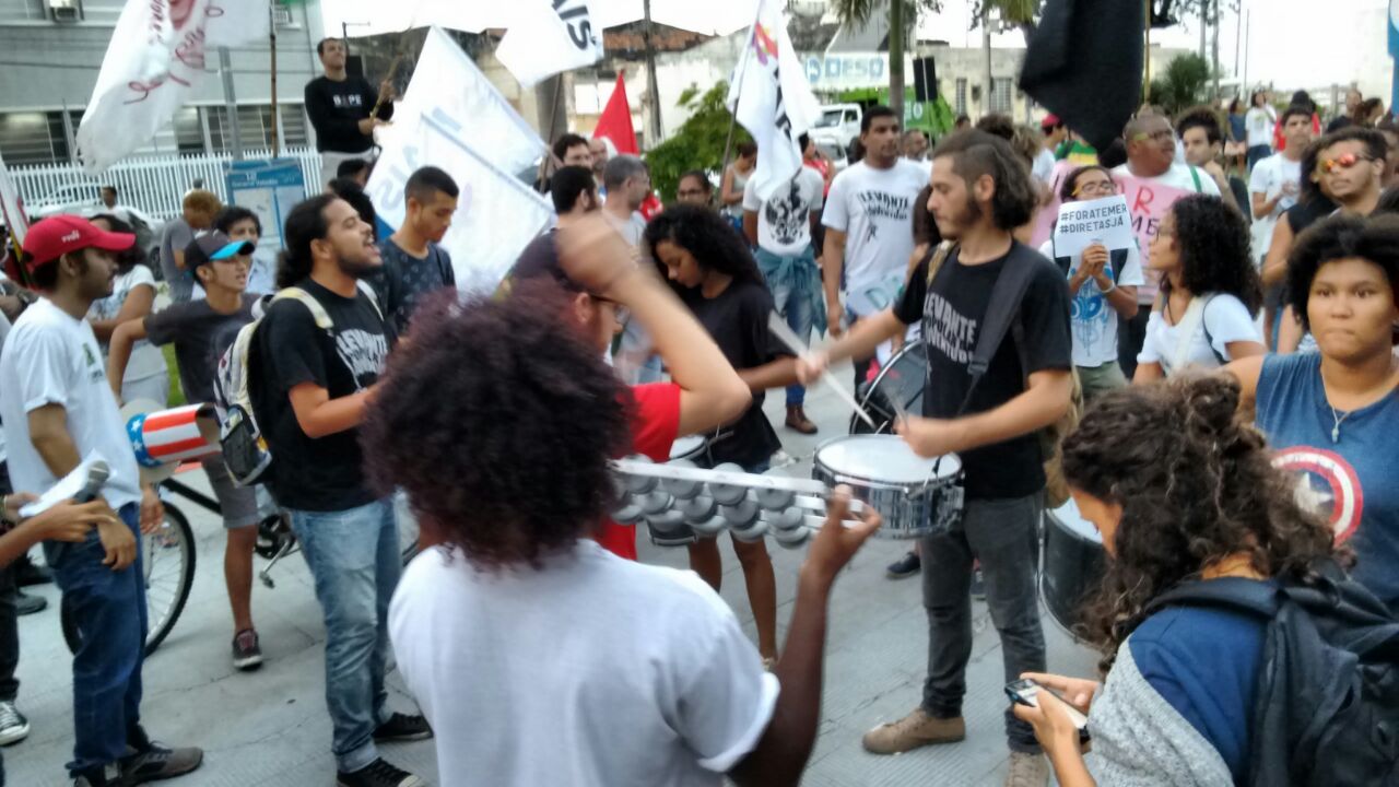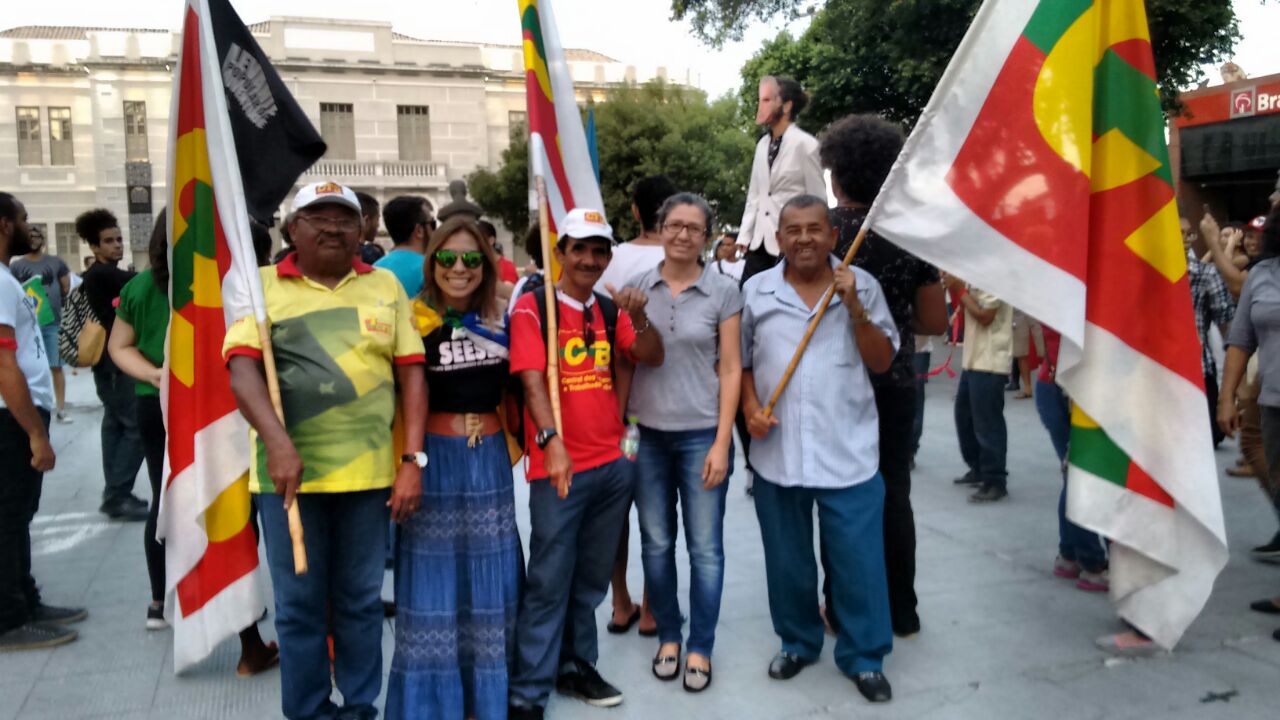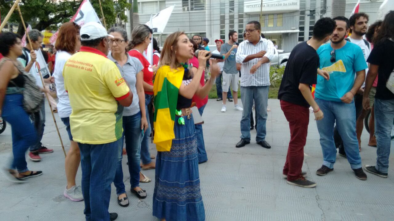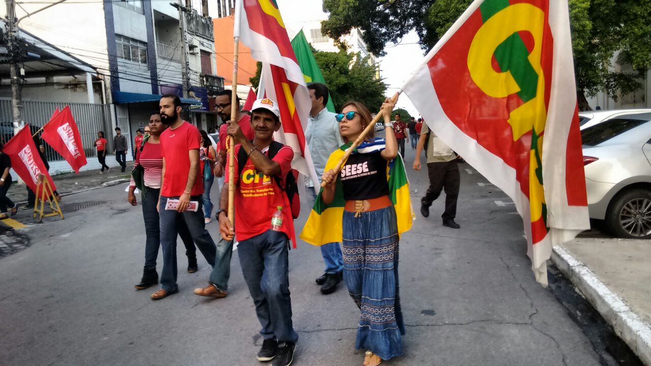 Atendendo a um chamado de mobilização nacional, direção do Seese participou do protesto realizado na última quinta-feira, dia 18, contra o atual presidente da república, Michel Temer (PMDB) e o senador Aécio Neves (PSDB/MG), acusados de envolvimento em esquemas de corrupção com a empresa JBS. Esse assunto tem sido tema de centenas de reportagens de todos os veículos de comunicação nos últimos dias. A concentração começou na praça Camerino, situada no Centro da cidade, em seguida percorreu pela avenida Barão de Maruim onde os manifestantes pararam em frente à sede do PMDB de Sergipe para discursar.