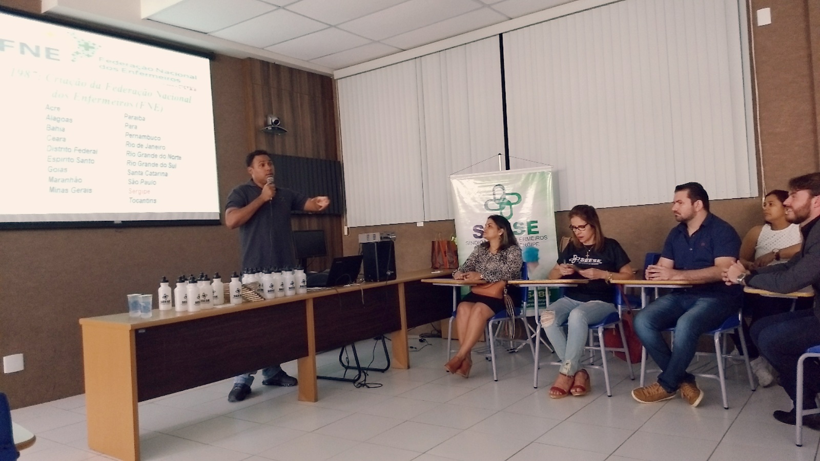 Com o objetivo de fomentar no aluno o estímulo ao envolvimento das questões políticas da profissão, a real atuação de um Sindicato, bem como, os direitos e deveres trabalhistas que o profissional da Enfermagem possui, a direção do Sindicato dos Enfermeiros do Estado de Sergipe (SEESE), organizou 12ª Oficina Sindical em parceria com as Universidades e Faculdades pública e privadas, durante a tarde desta segunda-feira, dia 06, na Universidade Tiradentes, campus Farolândia.