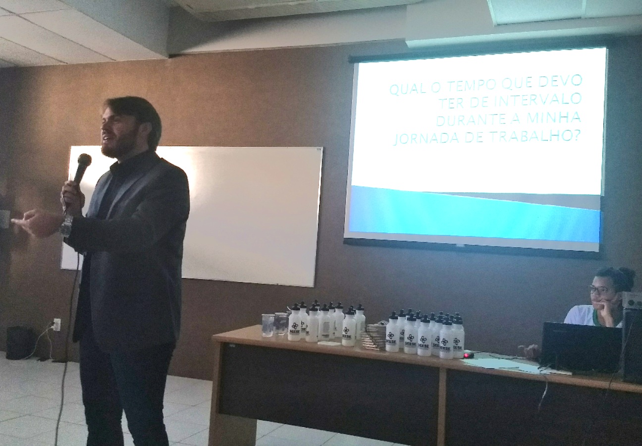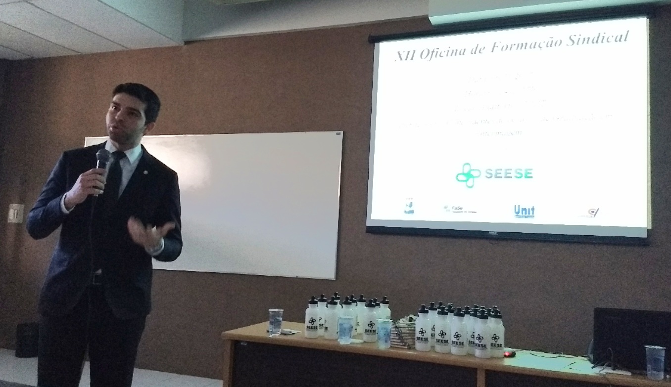 Dentro da programação, os alunos do 9º e 10º períodos do curso de Enfermagem, assistiram palestras da assessoria jurídica do Seese, ministrada pelo advogado André Kazukas que abordou os temas sobre carga horária definida, aviso prévio, adicionais da insalubridade e periculosidade, assédio moral, os intervalos de jornada e Acordo Coletivo de Trabalho (ACT). Já o defensor público do Núcleo de Saúde da Defensoria Pública, Gustavo Dantas, finalizou com chave de ouro a Oficina Sindical. Na oportunidade, ele relatou sobre o Desmonte do SUS e a judicialização na saúde. “É papel da defensoria pública garantir que o direito à saúde, previsto na Lei Fundamental, não vire promessa constitucional inconsequente”, disse Gustavo Dantas.