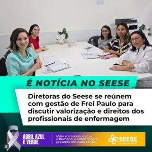 As diretoras do Seese, Gabriela Pereira e Lígia Maria Pinto, participaram de uma reunião com representantes da gestão municipal de Frei Paulo, com o objetivo de discutir pautas urgentes relacionadas aos direitos e à valorização dos profissionais de enfermagem do município.