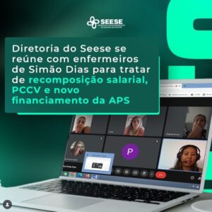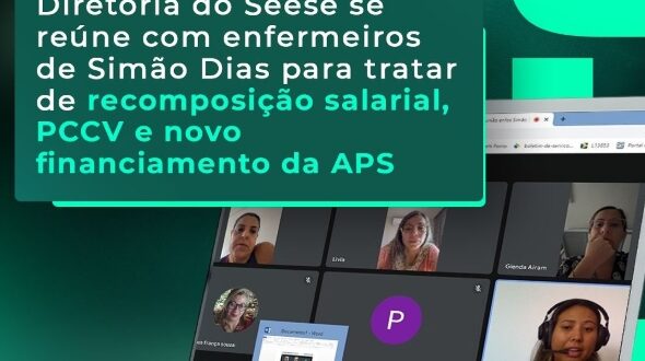 Na última sexta-feira, 04 de abril, a diretoria do Seese realizou uma reunião virtual com os profissionais de enfermagem do município de Simão Dias. O encontro teve como pauta central a recomposição salarial da categoria, a implementação do Plano de Cargos, Carreiras e Vencimentos (PCCV) e o novo modelo de financiamento da Atenção Primária à Saúde (APS).