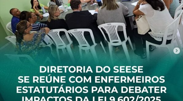 Na última quinta-feira (06), a diretoria do Seese esteve reunida na sede da entidade com os Enfermeiros Estatutários da Secretaria de Estado da Saúde de Sergipe. O encontro teve como objetivo esclarecer os impactos da Lei 9.602, sancionada em 15 de janeiro de 2025, que altera o Plano de Cargos, Carreiras e Vencimentos (PCCV) dos Servidores Estatutários da Saúde.
