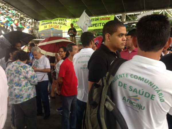 Em greve geral e por tempo indeterminado, a concentração foi realizada debaixo de forte chuva e rajadas de vento na Praça General Valadão, centro da capital, em frente ao prédio onde funciona a Secretaria Municipal de Finanças. Paralelo à falta de reuniões com o prefeito, ou algum gestor competente apto para atender às necessidades apontadas pelos servidores, a pasta da saúde pública de Aracaju é a única da esfera administrativa que permanece sem contabilizar o mínimo de reajuste salarial referente a este ano de 2016; além disso, este grupo é o último a receber os respectivos salários. A paciência com João e o grupo gestor há meses já alcançou o ponto máximo de cada servidor.
