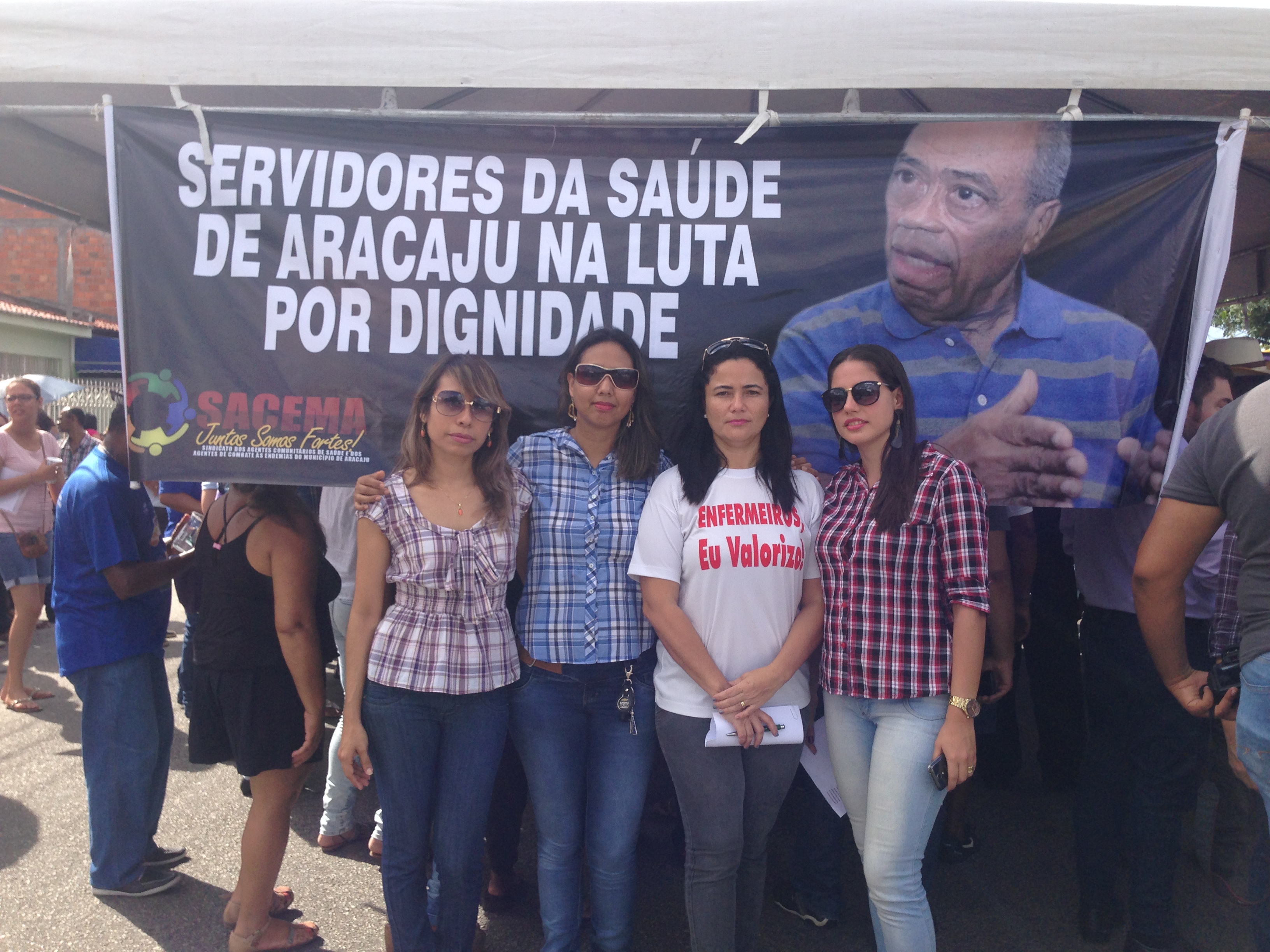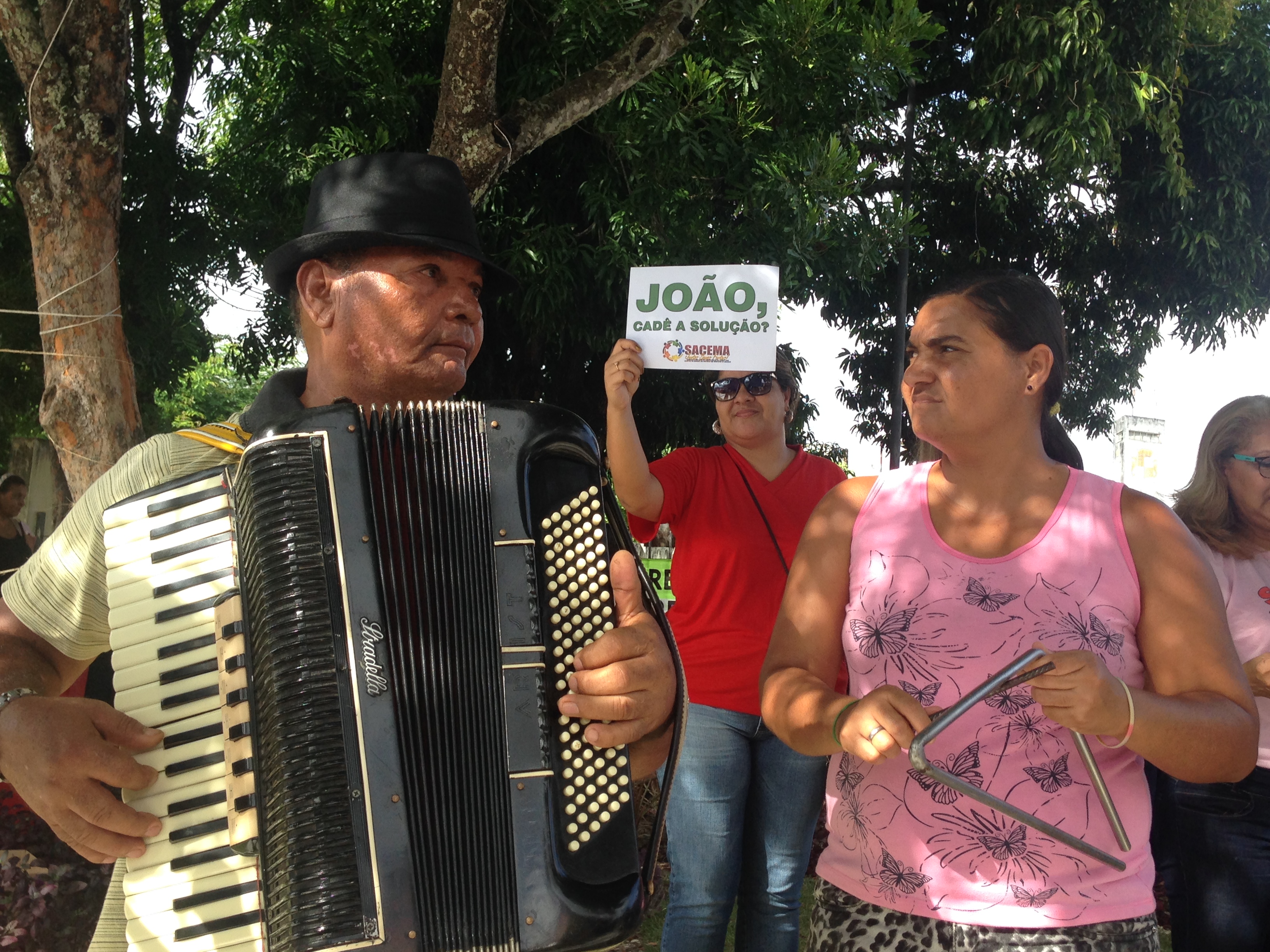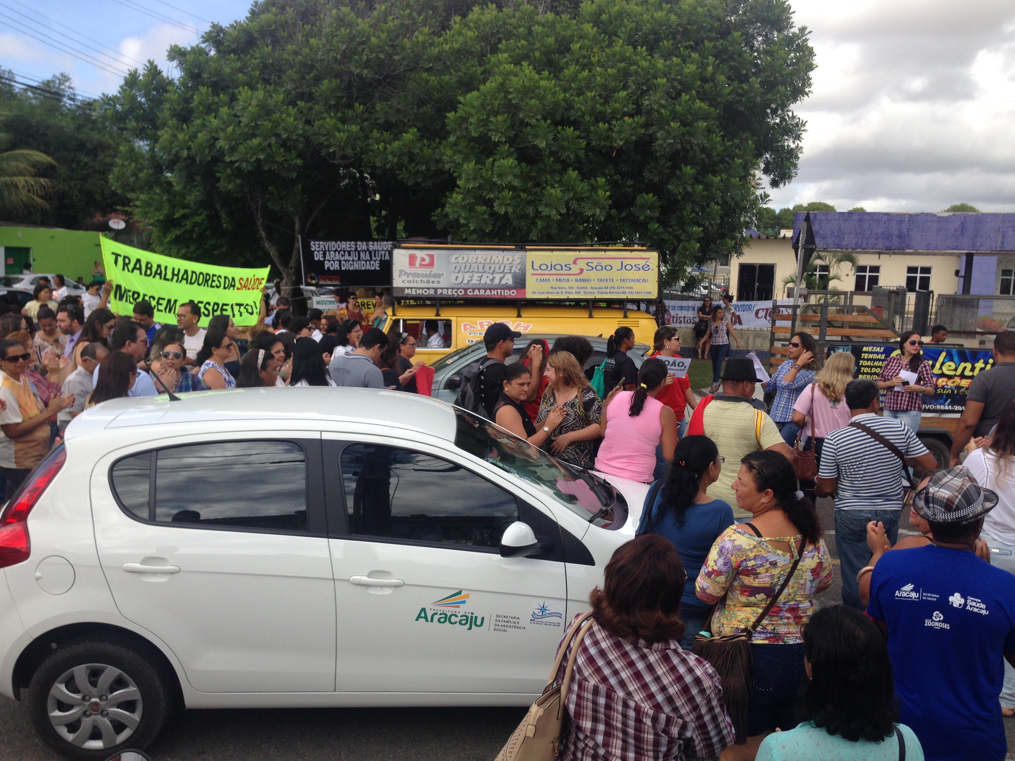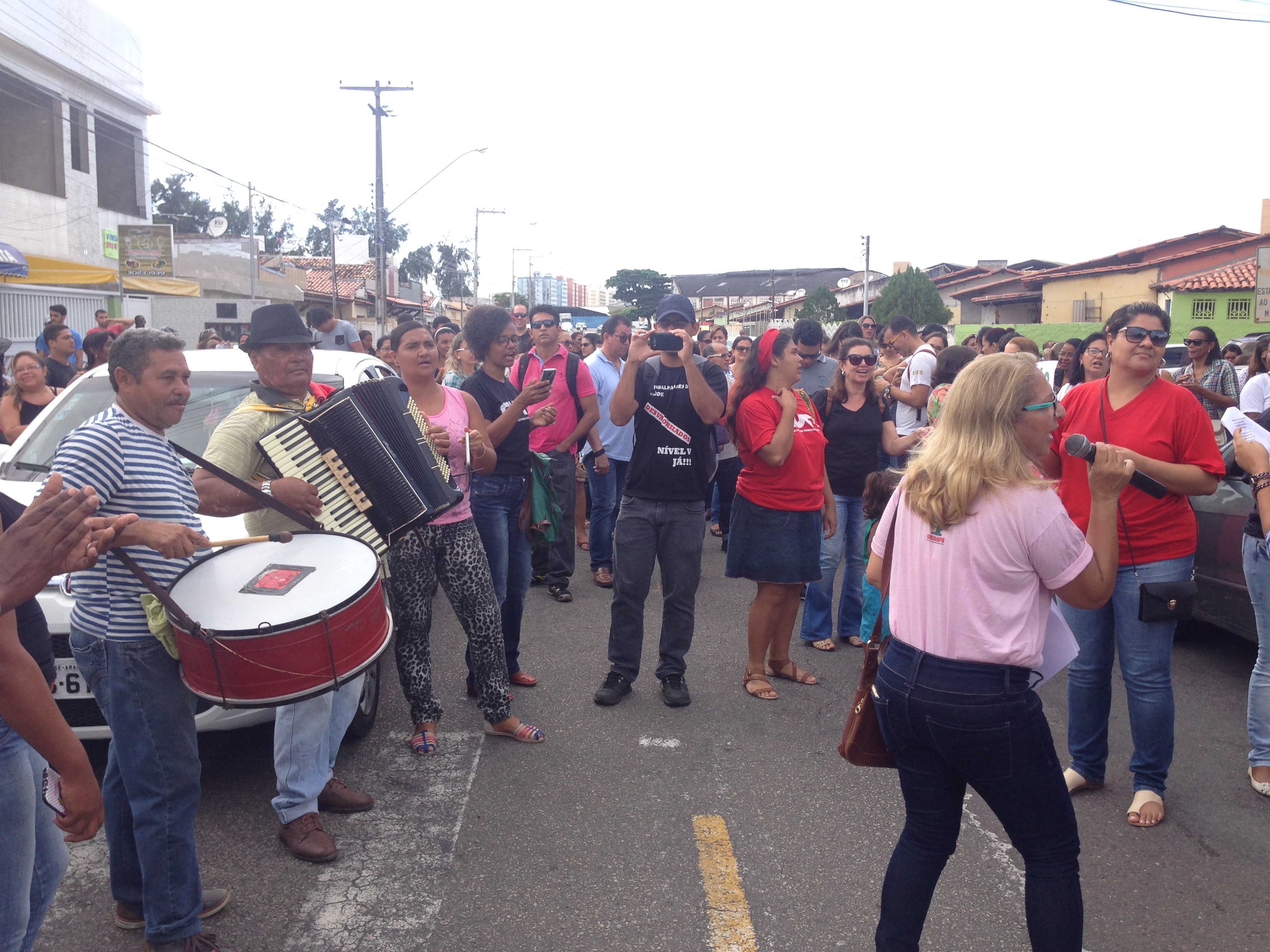 Com salários atrasados e sem reajuste financeiro, servidores da saúde ligados à Prefeitura de Aracaju realizaram na manhã de hoje a primeira edição do ‘Forró do João Sem Solução’, neste ano de 2016. A sátira, direcionada inicialmente ao prefeito João Alves Filho, contou com a participação de profissionais de 12 categorias diferentes que, desde a última quarta-feira, 01, estão em greve por tempo indeterminado. O ato grevista foi realizado na entrada principal do Centro Administrativo Aloísio Campos e contou com a animação de um trio pé-de-serra.