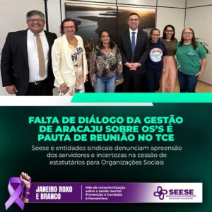 A reunião foi realizada com o conselheiro do TCE, José Carlos Felizola, e teve como foco a implantação das OS’s na rede de urgência e emergência de Aracaju, especificamente no Hospital Fernando Franco, bem como as implicações desse processo e a falta de transparência na transição. Durante o encontro, foi pontuado que os trabalhadores estatutários do município de Aracaju deverão ser cedidos para atuar sob a gestão da OS, sem que houvesse diálogo prévio com os sindicatos representativos ou com os próprios trabalhadores, o que tem gerado um clima de apreensão e angústia entre os servidores. Questões como a alteração no formato das escalas de trabalho, a garantia dos direitos dos estatutários e a manutenção das conquistas históricas da categoria seguem sem esclarecimentos por parte da gestão.