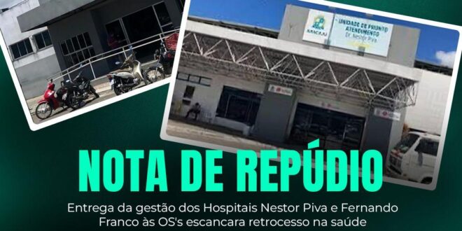 NOTA DE REPÚDIO Entrega da gestão dos Hospitais Nestor Piva e Fernando Franco às OS’s escancara retrocesso na saúde pública de Aracaju.