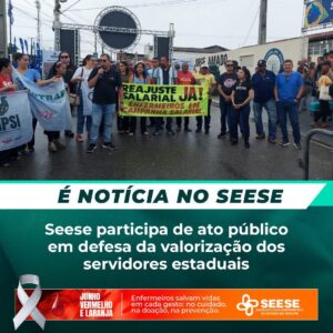A diretoria do Seese participou, na manhã desta quinta-feira, 04 de julho, de um ato público organizado por diversas entidades sindicais que representam os servidores públicos estaduais. A manifestação contou com a realização de uma coletiva de imprensa, em que os dirigentes sindicais expuseram à sociedade e aos veículos de comunicação a grave situação enfrentada pelos trabalhadores estatutários de diferentes categorias, incluindo os profissionais da saúde.