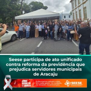 A diretoria do Seese participou, nos dias 9 e 10 de julho, de um ato público realizado em frente à Câmara de Vereadores de Aracaju. A mobilização foi organizada em protesto contra o projeto de reforma da previdência municipal, que representa sérias perdas para os servidores públicos da capital sergipana.