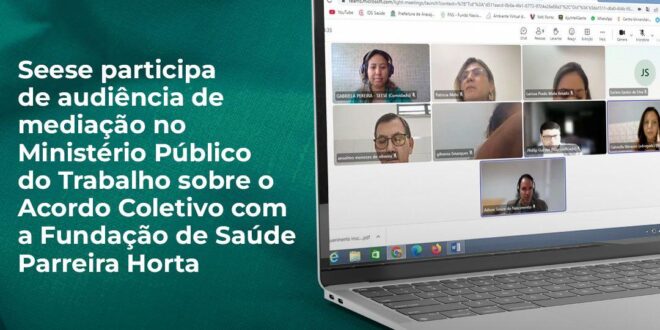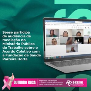 A diretoria do SEESE, representada pela vice-presidenta, Gabriela Pereira, participou, no dia 10 de outubro, de uma audiência de mediação no Ministério Público do Trabalho (MPT) envolvendo a Fundação de Saúde Parreira Horta (FSPH). O encontro teve como objetivo discutir os pontos que ainda impedem a conclusão do Acordo Coletivo de Trabalho (ACT) entre a entidade e os trabalhadores.