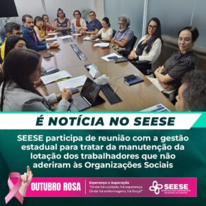 A diretoria do SEESE esteve reunida nesta quarta-feira, 22 de outubro, com representantes da gestão estadual, para tratar da manutenção da lotação dos empregados e servidores que optaram por não aderir às Organizações Sociais (OS’s).