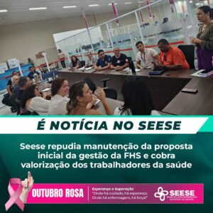 A diretoria do SEESE participou, nesta quinta-feira (16), de mais uma reunião da mesa de negociação do Acordo Coletivo de Trabalho (ACT) da Fundação Hospitalar de Saúde (FHS). Durante o encontro, a gestão estadual apresentou o retorno sobre os pleitos encaminhados pelos sindicatos da saúde nas reuniões anteriores.